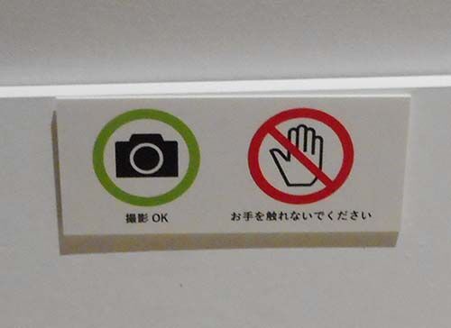 先に書きました伊丹市立美術館「OJUN、棚田康司 展」の話です。 今回は、見学記録です。 撮影OK(タッチ不可) おもしろい表示です。 壁の、床に近い、低いところに、そっと、目立たないような表示です。 近寄ってこれを撮影していたら職員さんが「どうぞ…